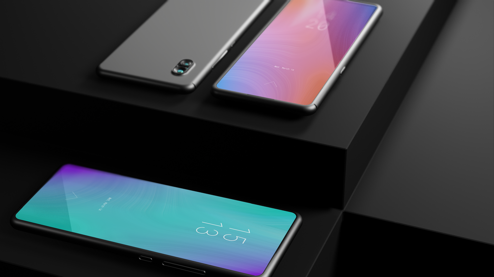 A Photoshop Template of 3 phones with 2 interchangeable screens and hue adjustable background for product showcases and more.